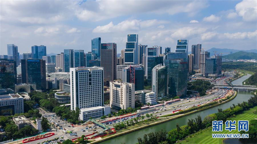 深圳市南山区大沙河畔的科技园(2020年9月27日摄,无人机照片)。新华社记者 毛思倩 摄