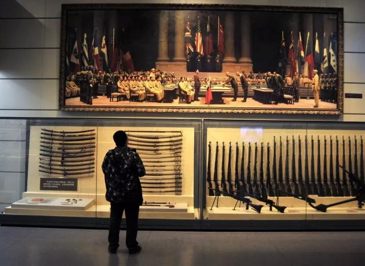 △2015年 国家博物馆 一位参观者在日本战败投降油画前驻足观看 图/视觉中国