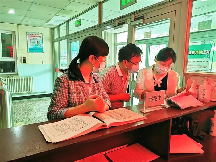 乌鲁木齐市高新区(新市区)纪委监委第三协作区在辖区学校现场查看防疫物资储备情况。(黄玮玲 摄)