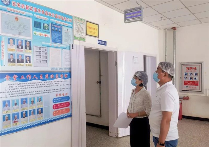 若羌县纪委监委强化疫情防控监督,深入校内食堂、学生配餐单位等进行现场检查。(李甲文 摄)