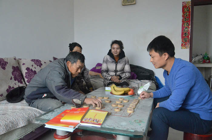 尉犁县纪检监察干部汪涛跟结对户下象棋