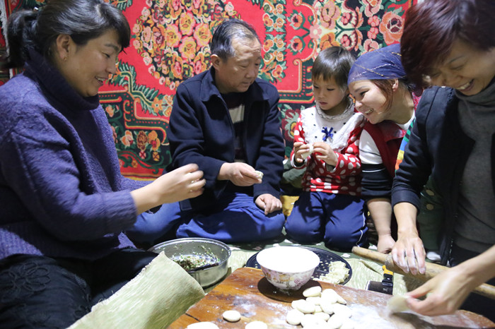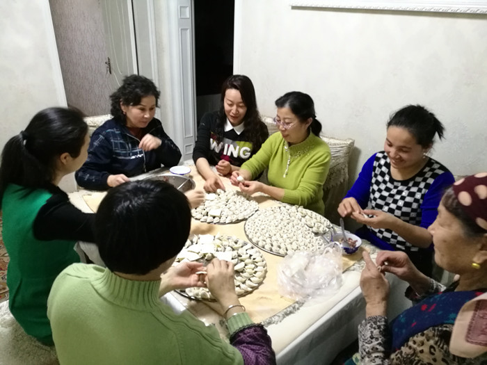 库尔勒市纪检监察干部在亲戚家中包饺子