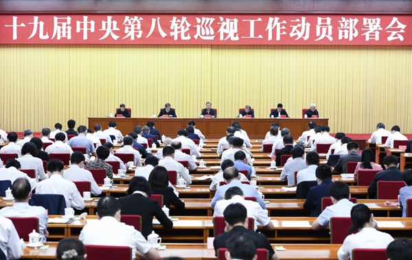 中共中央政治局委员、中央巡视工作领导小组副组长杨晓渡主持会议,中共中央政治局委员、中央巡视工作领导小组副组长陈希宣布十九届中央第八轮巡视组长授权任职及任务分工决定。