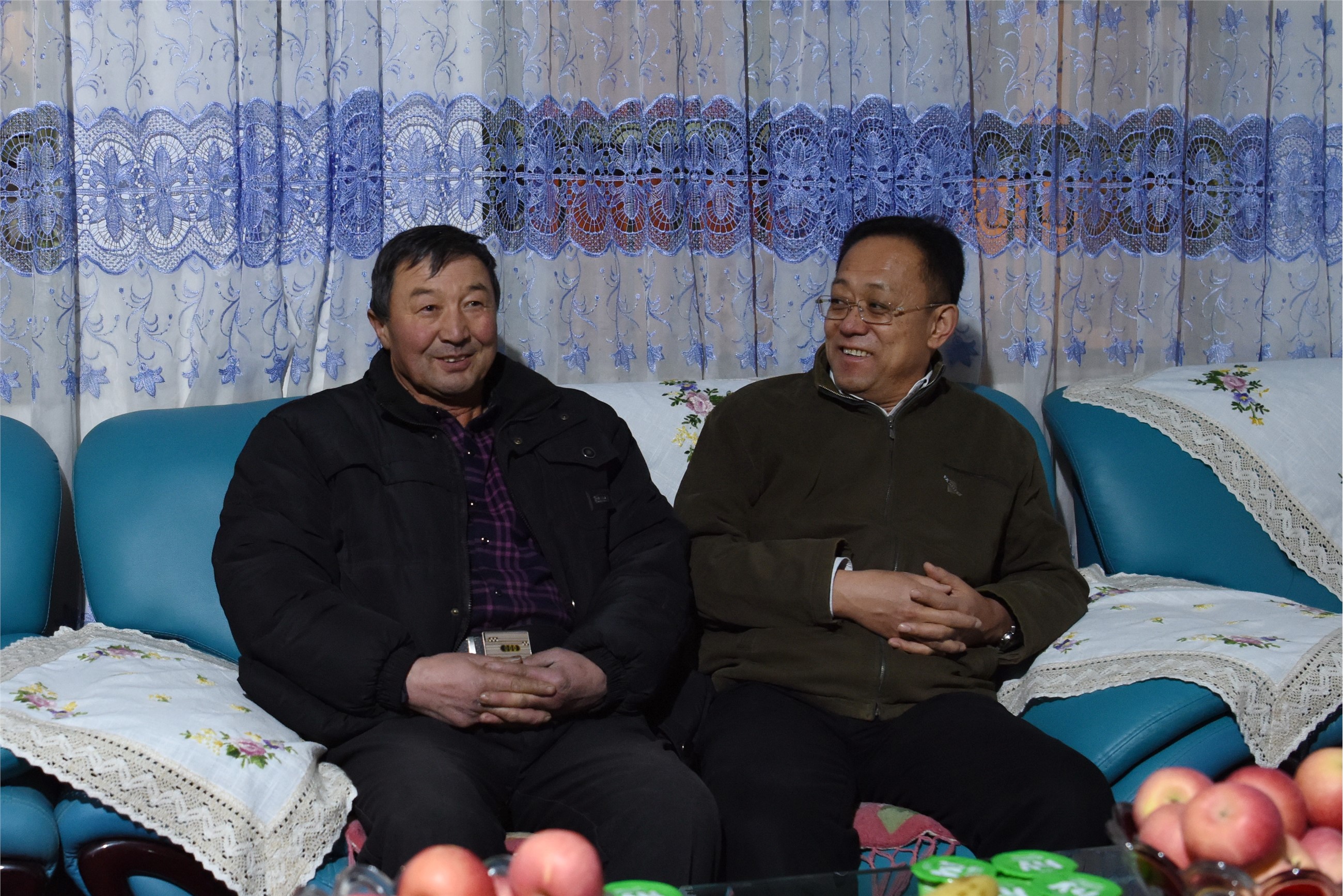 12月19日晚,州党委书记李刚与结亲户阿布都热衣木·巴拉提愉快地唠家常。 本报记者 杨晓东 摄