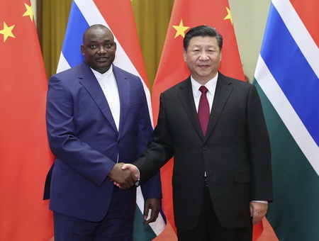 习近平指出,中非是好朋友、好伙伴、好兄弟。中共十九大提出,中国将致力于同各国一道构建新型国际关系和人类命运共同体,将秉持正确义利观和真实亲诚理念,加强同包括非洲在内的发展中国家的团结合作。中国对外合作,不附加任何干涉其他国家内政的政治条件。中非合作的要义,就是要把中国发展同助力非洲发展紧密结合起来,实现合作共赢、共同发展。无论中国发展到哪一步,无论国际风云如何变幻,中国都将始终同非洲等广大发展中国家站在一起,永远做非洲的真诚朋友和可靠伙伴。冈比亚是中非合作论坛大家庭的新成员。中方愿同冈方一道推进落实论坛约翰内斯堡峰会成果,让两国人民更多受益。