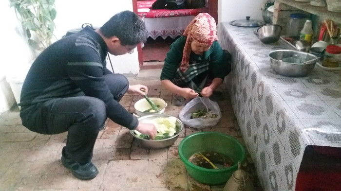 12月25日,州纪委办公室主任汪树洪一到亲戚家就帮助亲威阿不力克木·毛拉土地妻子做午饭。