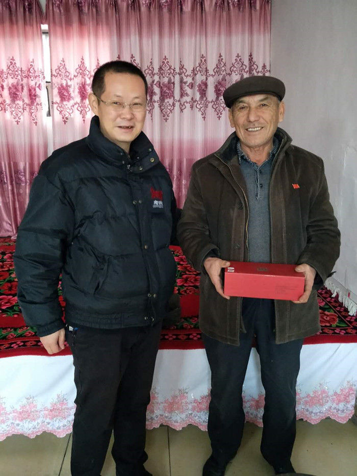 四组村民、老党员艾合买提·肉孜激动地说:“今天我的侄子又来我们家看我了,还给我带了礼物,我的心里暖暖的”。