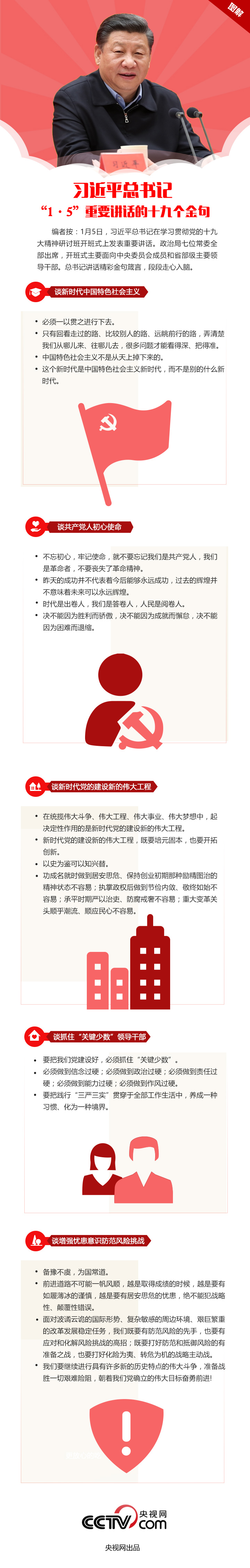 1月5日,习近平总书记在学习贯彻党的十九大精神研讨班开班式上发表重要讲话。政治局七位常委全部出席,开班式主要面向中央委员会成员和省部级主要领导干部。总书记讲话精彩金句箴言,段段走心入脑。