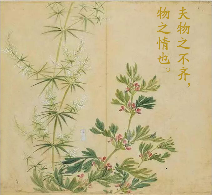 孟子说:“夫物之不齐,物之情也”,意思是天下万物没有同样的,它们都有自己的独特个性。他指出,物品的价值有的相差一倍、五倍(蓰:五倍),有的相差十倍、百倍,有的甚至相差千倍、万倍,倘若你将它们等同看待,就是扰乱天下。为此,他举例说,如果巨屦(做工粗糙的鞋)与小屦(做工精细的鞋)同样价钱,人们难道会同意吗?后朱熹注曰:“孟子言物之不齐,乃其自然之理。”世界上的事物各有差异,这就是自然的规律。