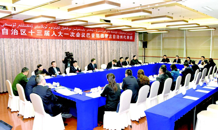 1月23日,巴州代表团召开全体会议,认真审议政府工作报告、计划报告和预算报告。巴音郭楞日报特派记者 杨晓东 摄