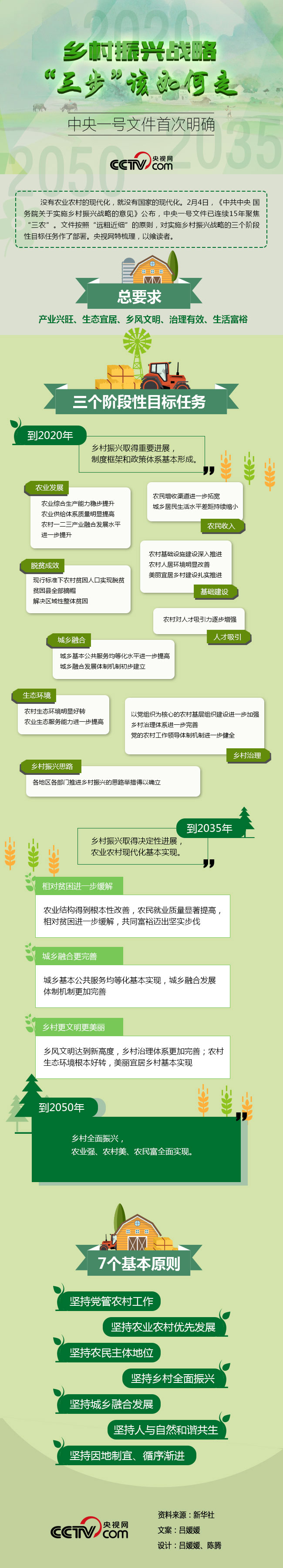 没有农业农村的现代化,就没有国家的现代化。2月4日,《中共中央 国务院关于实施乡村振兴战略的意见》公布,中央一号文件已连续15年聚焦“三农”。文件按照“远粗近细”的原则,对实施乡村振兴战略的三个阶段性目标任务作了部署。央视网特梳理,以飨读者。