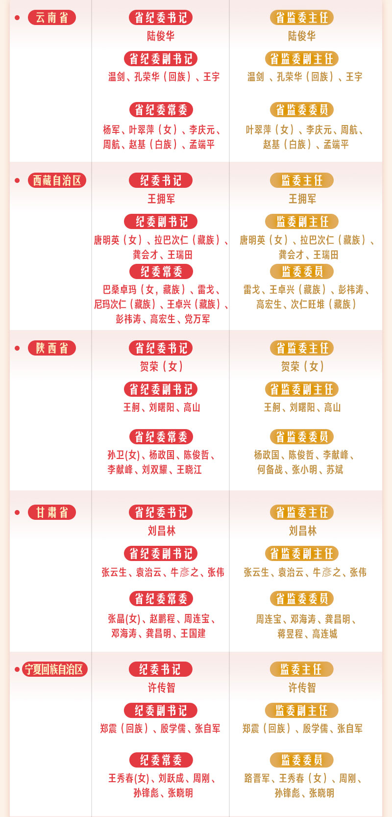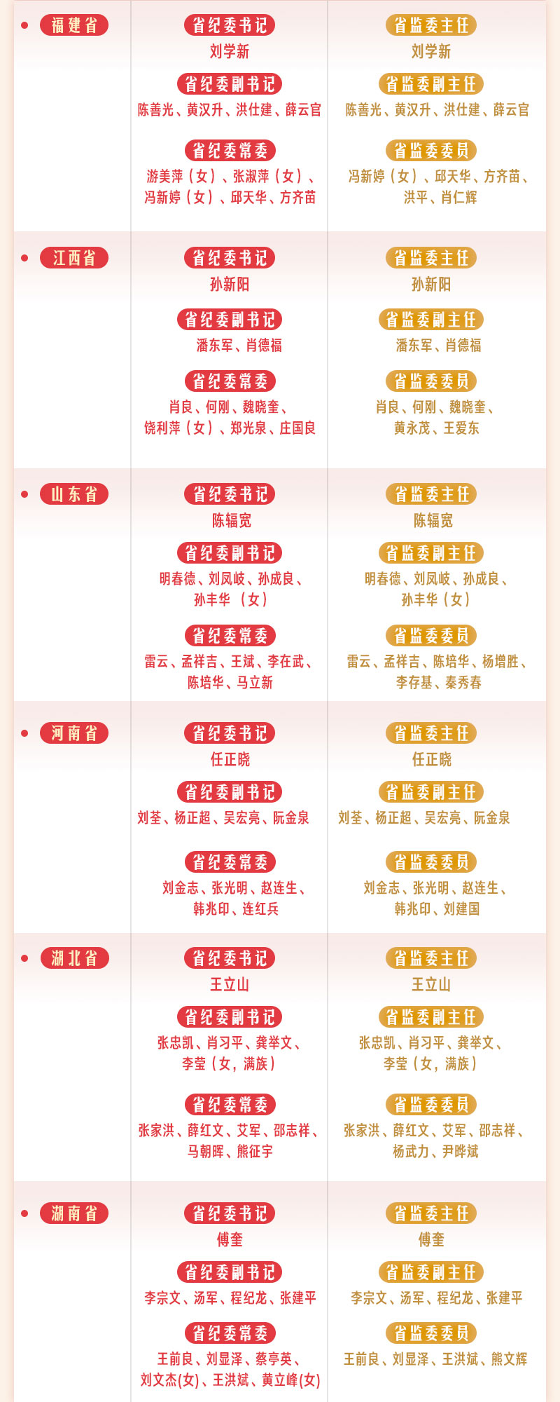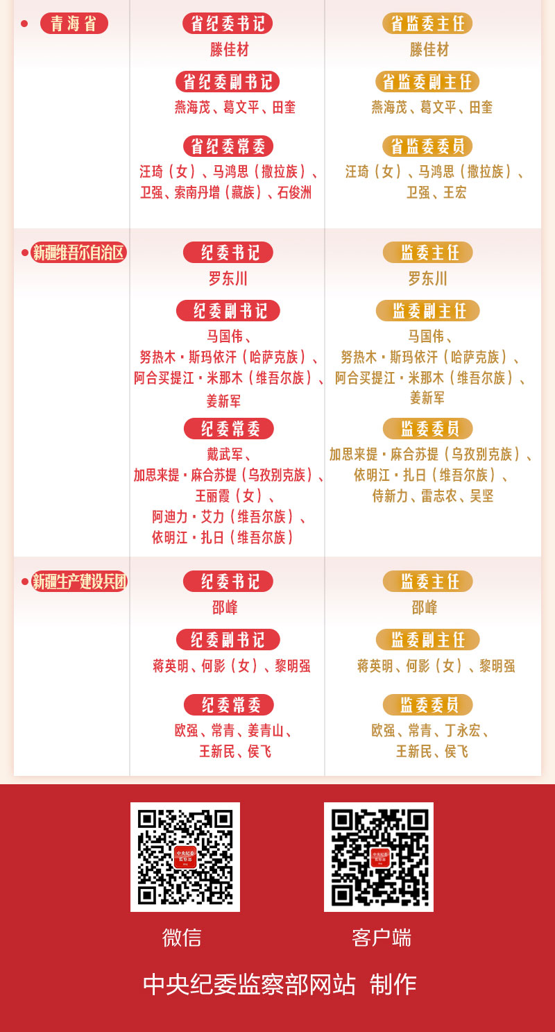 全国各省区市纪委监委领导一览表