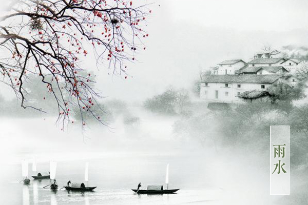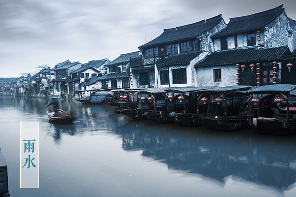 雨,甲骨文字形好像天空之中有雨淅淅沥沥落下,水,甲骨文字形好像蜿蜒而下的水流,水声潺潺,水滴飞溅。雨水一词,从字形本身就带着缠绵的雨丝和零落的雨滴,氤氲成一片烟雨江南。