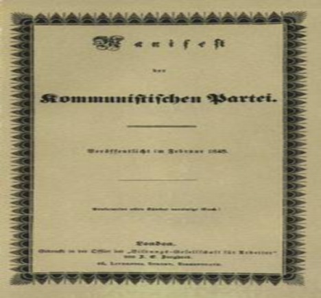 1848年2月21日,受共产主义者同盟第二次代表大会委托,马克思和恩格斯共同起草的《共产党宣言》德文全文单行本在伦敦出版。开始时,恩格斯撰写了一份草案,即《共产主义原理》。这部作品由二十五组问答组成,通俗易懂地介绍了共产主义的基本原理。但是,马克思、恩格斯认为,用问答的形式做普及宣传是可以的,而以此作为共产主义者同盟的宣言“是完全不合适的”。于是,马克思执笔重新起草了宣言,在其中广泛吸收了《共产主义原理》的基本思想。在这个新的文件中,马克思系统阐述了共产主义运动的历史沿革、共产主义革命的历史任务,以及未来共产主义社会的性质,反驳了资产阶级对共产主义的批评。这个文件就是《共产党宣言》。