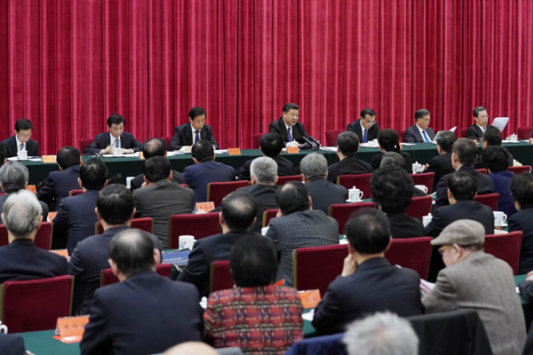 3月1日,中共中央在北京人民大会堂举行纪念周恩来同志诞辰120周年座谈会。中共中央总书记、国家主席、中央军委主席习近平发表重要讲话,中共中央政治局常委李克强、栗战书、汪洋、王沪宁、赵乐际、韩正出席座谈会。(记者 谢环驰 摄)