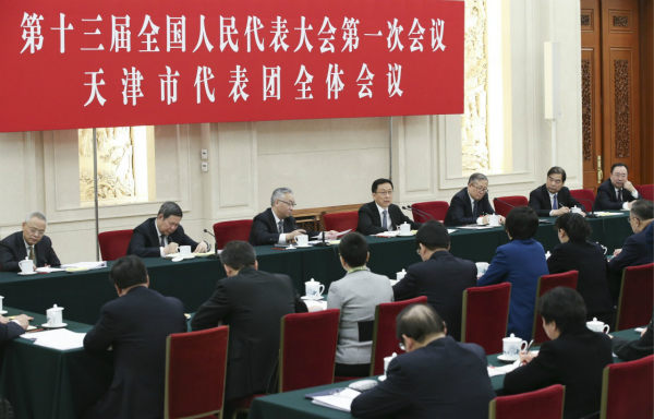 3月7日,中共中央政治局常委韩正参加十三届全国人大一次会议天津代表团的审议。(新华社记者 姚大伟 摄)
