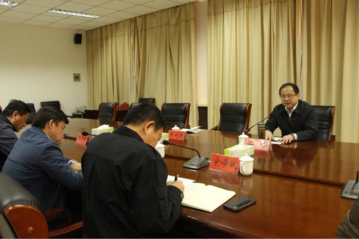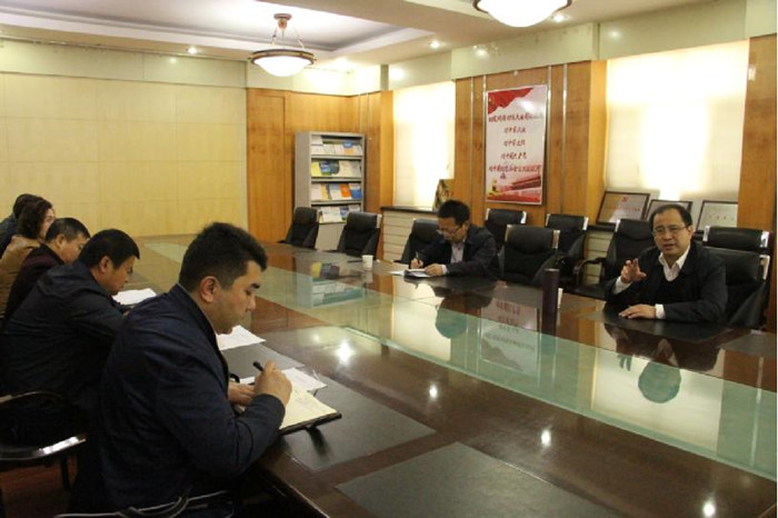 图为州党委常委、纪委书记、监委代主任安峰在若羌县与县委常委班子成员座谈交流。