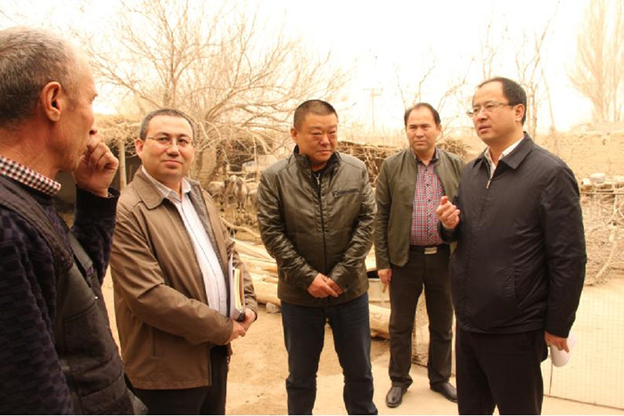 图为州党委常委、纪委书记、监委代主任安峰在若羌县铁干里克镇与贫困户亲切交流。