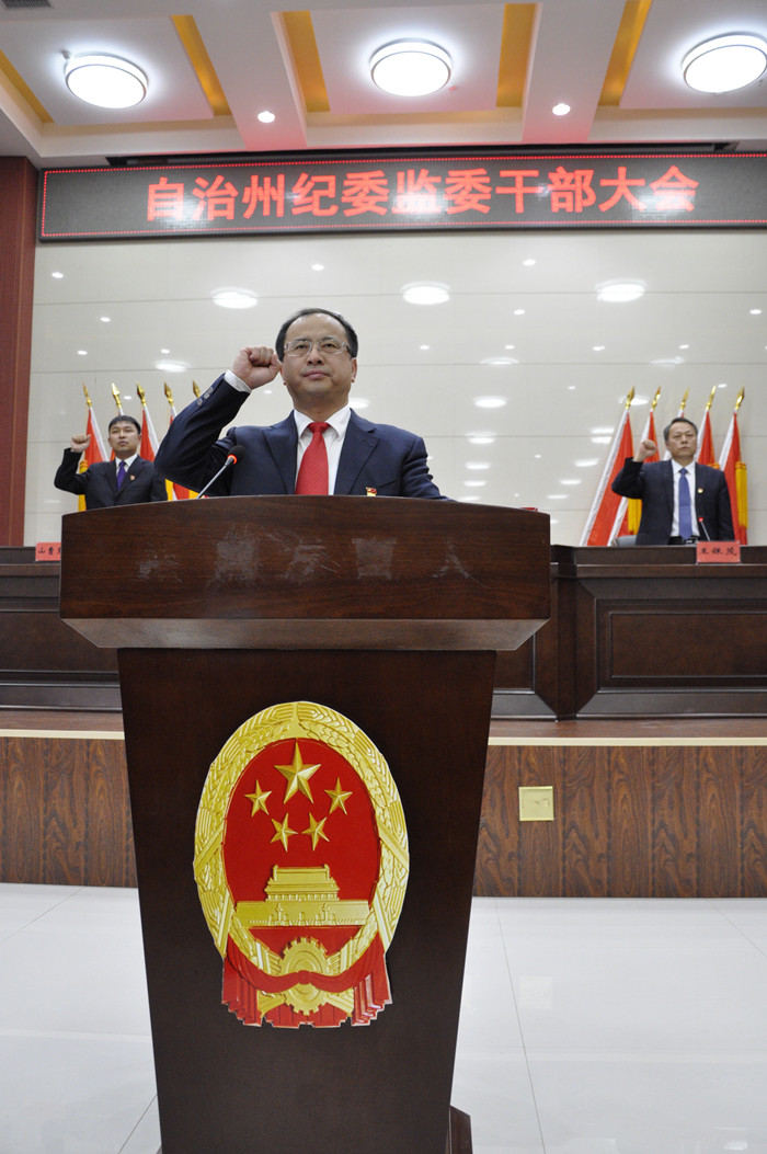 巴州党委常委、纪委书记、监委代主任安峰带领147名纪检监察干部进行宪法宣誓