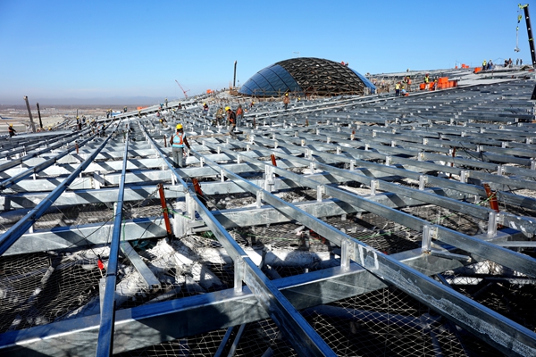 2017年6月30日,主航站楼钢结构实现封顶;12月31日,封顶封围目标高质量高标准按期实现。钢铁“凤凰”在京南凌空展翅。