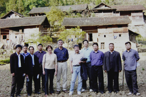 2003年10月,南仁东带领外国专家和工作人员考察大窝凼,并和当地村民合影留念