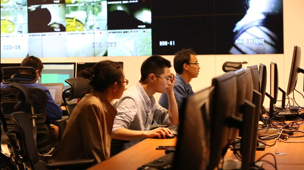 工作人员在“天眼”总控室内工作