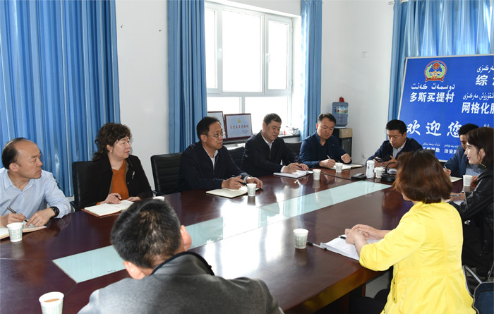 李刚随机来到轮台县策大雅乡多斯买提村村委会,检查维稳工作部署落实情况,并与“访惠聚”驻村工作队和村“两委”干部亲切交谈,详细了解维护稳定、群众工作、基层组织建设和脱贫攻坚等工作开展情况。