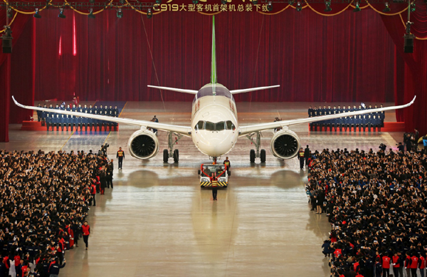 79分钟的亮相之旅,标志着C919从一个名字、一叠叠设计图纸,变成翱翔蓝天的雄鹰。这一天,几代航空人用心血和汗水浇灌的梦想成为现实。这一天,中华民族再次向世界证明了自己的聪明才智与创造伟力。