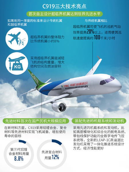 据了解,7年研制时间里,中国商飞攻克了航电、飞控系统控制律、电刹车等102项核心关键技术,其中三大技术亮点更是让C919成为一架了不起的飞机。