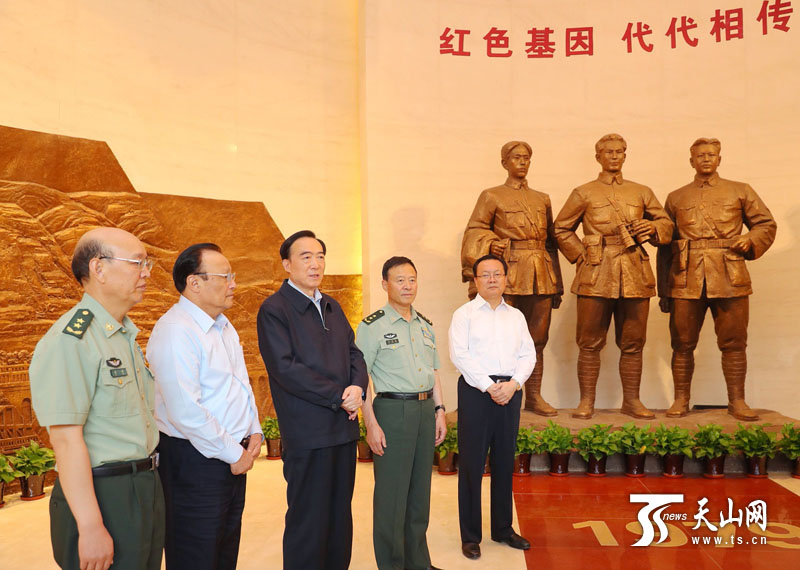 师史馆内,一张张照片、一件件实物、一幅幅场景,充分展现了这支由刘志丹、谢子长、习仲勋等老一辈无产阶级革命家创建的红军部队,在中国共产党的领导下,走过的光辉历程、传承的红色基因、立下的赫赫战功、建立的不朽功勋。陈全国、雪克来提·扎克尔等不时驻足、仔细观看,认真听取工作人员讲解。