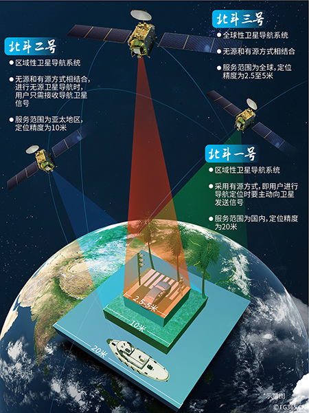 ——导航范围从区域向全球扩展。北斗一号服务范围是我国及周边,北斗二号服务范围是亚太地区,北斗三号则扩展至全球。