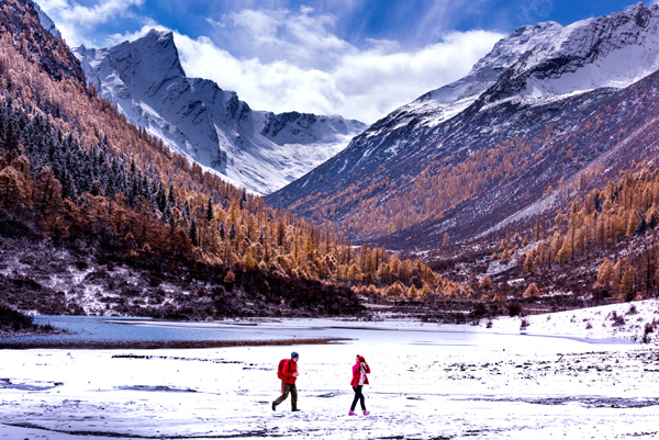 放船闲看雪山晴,风定奇寒晚更凝。(崔朋朋 摄)