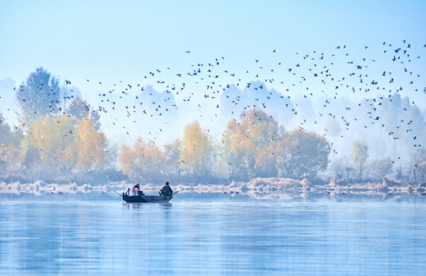冰铺湖水银为面,风卷汀沙玉作堆。(李建国 摄)