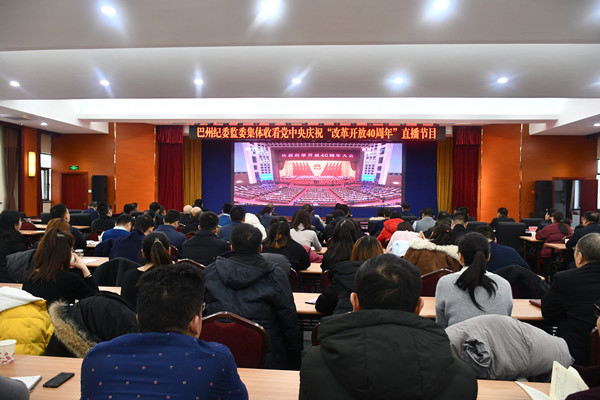 庆祝改革开放40周年大会12月18日上午10时在人民大会堂举行。习近平总书记出席大会并发表重要讲话,巴州纪委监委积极组织全州各级纪检监察机关收听收看大会实况,第一时间组织纪检监察干部学习讨论,掀起学习热潮。