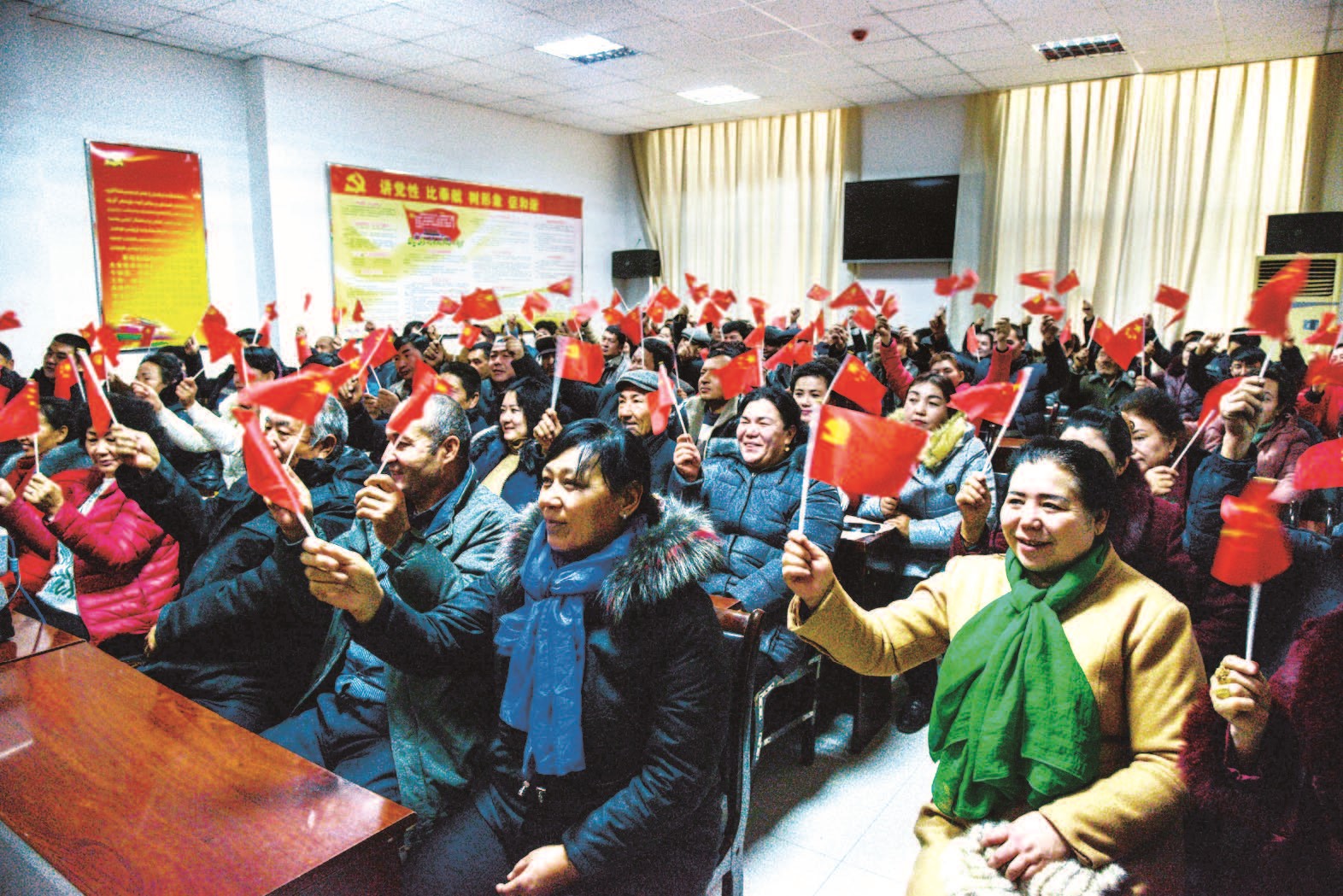 12月18日,尉犁县兴平镇达西村各族党员群众在该村会议室集中收看庆祝改革开放40周年大会直播。 通讯员 李飞 摄