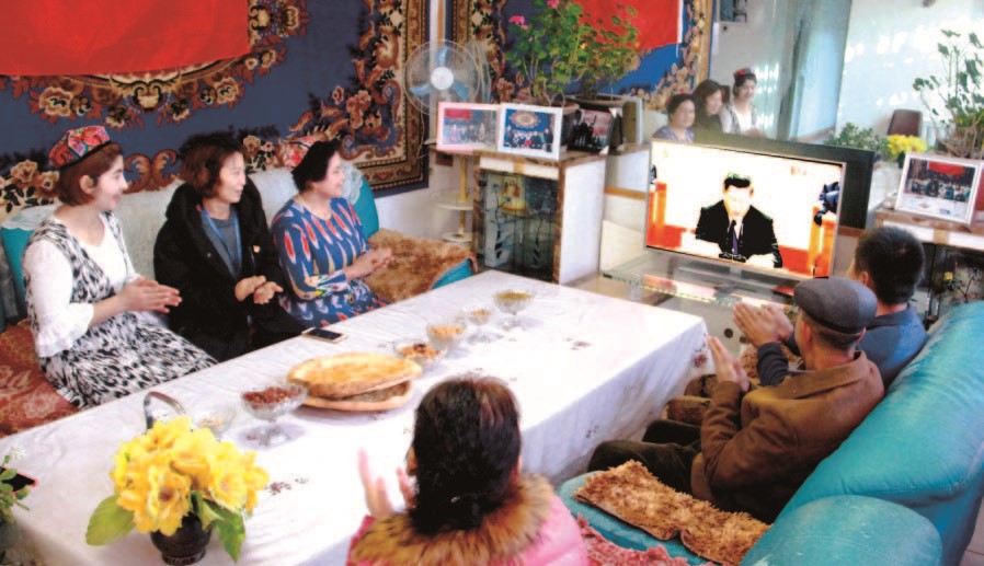 在且末县且末镇却格里买亚社区,且末县财政局驻社区工作队走访入户时在退休干部阿里木·吐尔迪家中观看了庆祝改革开放40周年大会直播。阿里木说:“我今年55岁了,是改革开放的亲身经历者,也是新疆巨大变革的切身体验者。今天观看大会直播,让我真真切切地感受到了如今美好生活的来之不易,今后我会尽自己所能教育引导身边的人热爱党、感党恩。”