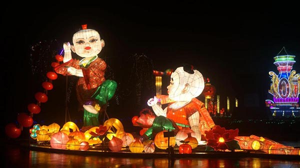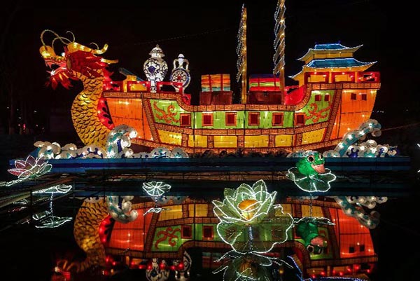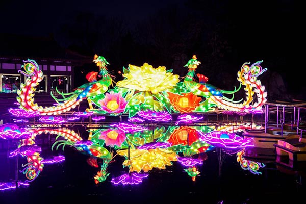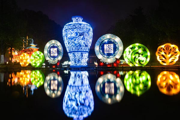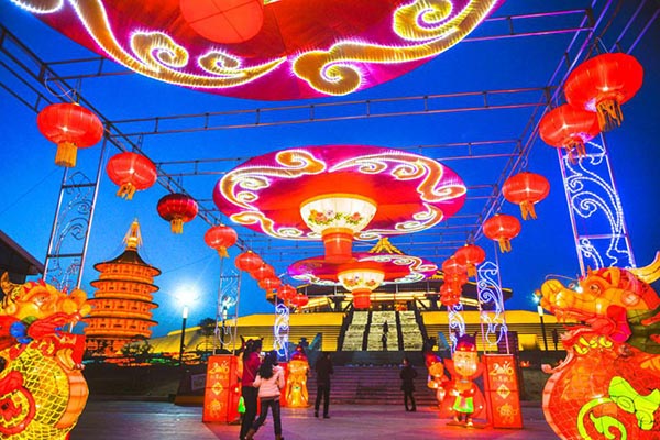金猪贺岁、梦回隋唐、光影千秋、动感光柱、水景彩灯……万盏彩灯齐绽,把宫廷文化、民俗文化和彩灯文化融为一体,再现盛世隋唐时期灯会盛况。