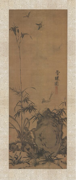 宋元时期,以萱草指代母亲不仅在诗文中渐成惯例,在绘画中也开始出现。元代画家刘善守的《萱蝶图》就是极好的例子。画中蝴蝶、灵芝、白头翁都是长寿的象征,卓然挺立的萱草花指代母亲,结合画上“忠孝传家”的印章,可以推断这幅画应该是一幅为母亲所做的祝寿图。