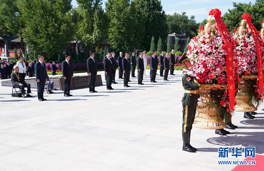 9月3日上午,习近平、李克强、栗战书、汪洋、王沪宁、赵乐际、韩正、王岐山等党和国家领导人来到中国人民抗日战争纪念馆,出席纪念中国人民抗日战争暨世界反法西斯战争胜利75周年向抗战烈士敬献花篮仪式。 新华社记者 丁林 摄